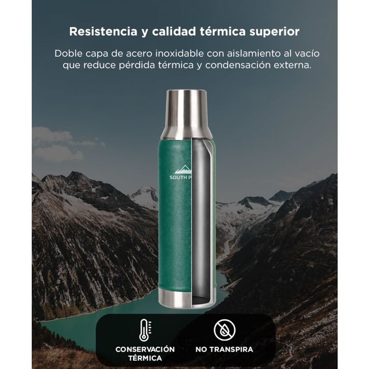 Conservación térmica prolongada para todo el día: El Termo South Port by Gadnic 800 ml mantiene la temperatura por horas gracias a su sistema de doble pared con aislamiento interno. Ideal para jornadas largas, trabajo o actividades al aire libre. Sistema de cierre hermético antigoteo: Su tapa con se...