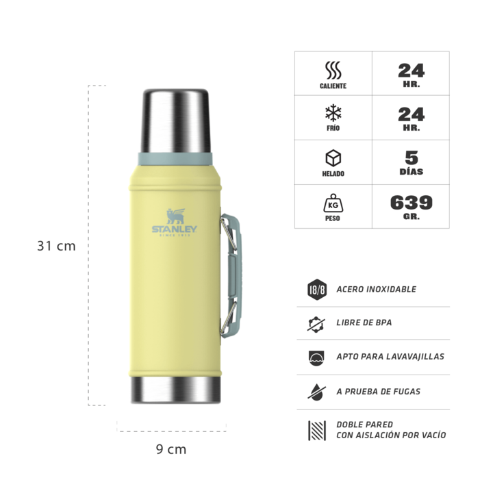 ¿Sos un apasionado de los viajes y aventuras? El icónico Termo Mate Classic de Stanley ha presenciado viajes memorables durante generaciones. Llevá este clásico con vos y disfrutá de momentos compartidos. Esta botella mantiene tus bebidas calientes y frias hasta por 24 horas gracias a la doble pared...