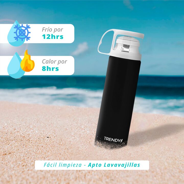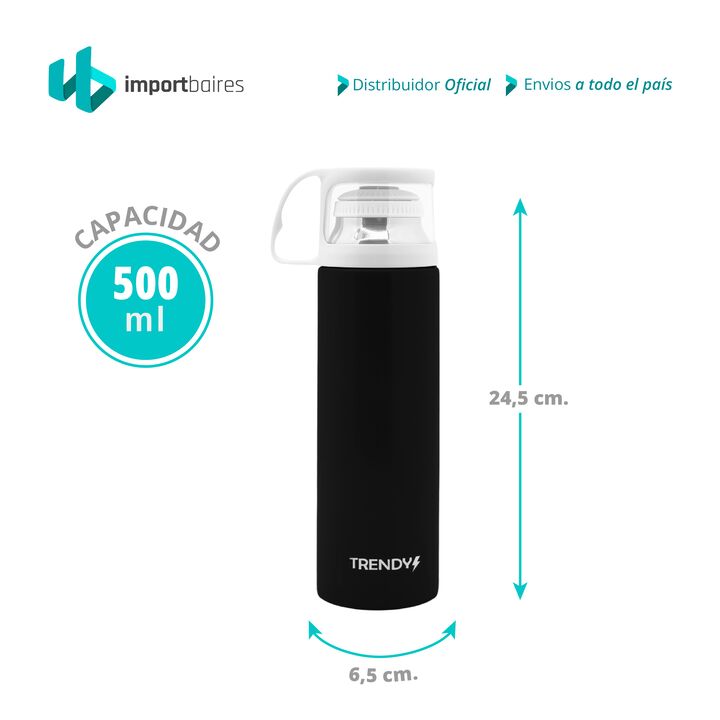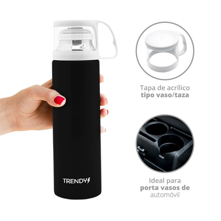 TERMO TRENDY ACERO INOXIDABLE CON REVESTIMIENTO -Capacidad: 500 ml -Material: acero Inoxidable exterior pintado -Aislamiento de doble capa -Pico Matero Botón Push -Modelo ergonómico, ligero e irrompible -Tapa resistente de acrílico para usar como vaso -100% hermético -Mantiene el calor por 8 horas -...