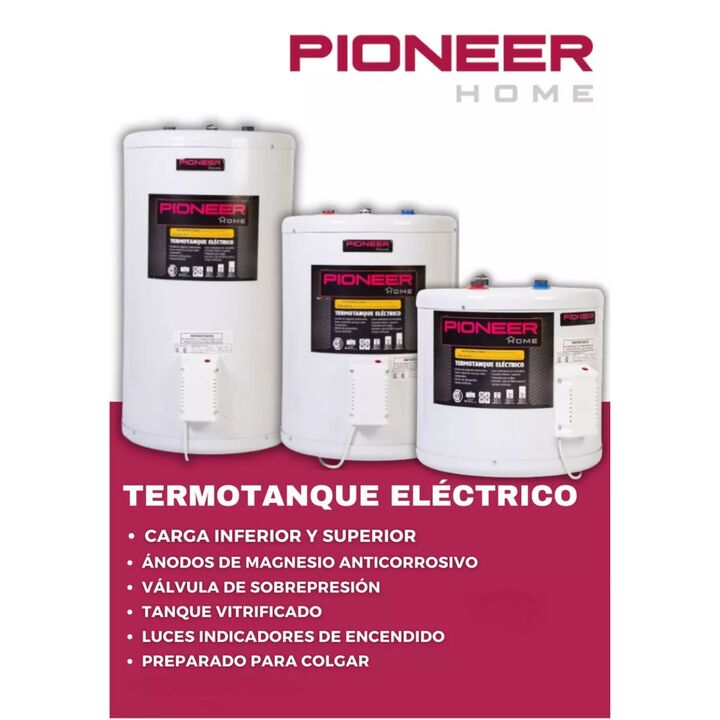 TERMOTANQUE PIONEER 60 LITROS ELÉCTRICO DE COLGAR Marca:Pioneer Código: TE60PIONEER TERMOTANQUE ELECTRICO 60LTS - CARGA INFERIOR SUPERIOR - ANODOS DE MAGNESIO ANTICORROSIVO - VALVULA DE SOBREPRESION - TANQUE VITRIFICADO - LUCES INDICADORES DE ENCENDIDO - PREPARADO PARA COLGAR - TERMO SWITCH DE CORTE...