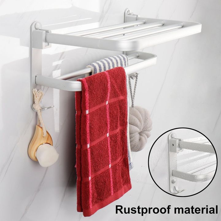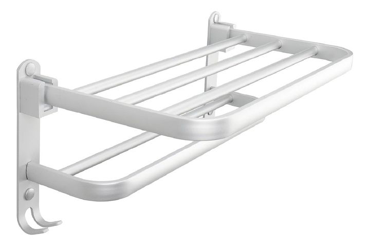 HOGAR ACTUAL TOALLERO DE ALUMINIO SKU: 142284 Toallero rebatible de Aluminio Color Gris • Material: Aluminio • Toallero, repisa, porta toalla • Para prendas y toallas • La repisa de arriba puede sostener varias toallas y toallones doblados • La parte superior es plegable 90° hacia arriba, la de abaj...