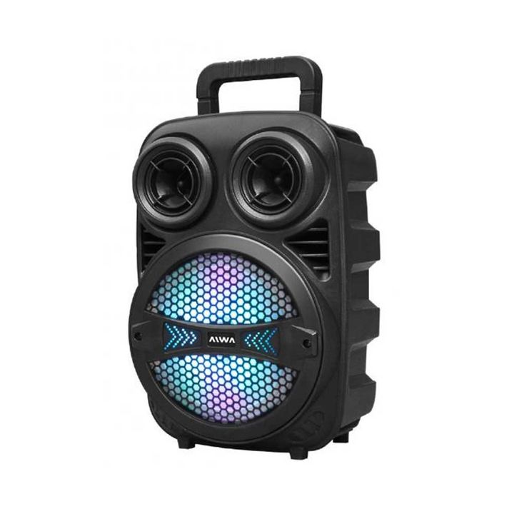 La torre de sonido Aiwa AW-P240D-SN ofrece potencia de 2500 W PMPO y conectividad Bluetooth para reproducir música sin cables. También incluye entrada auxiliar, batería recargable Li-ion 3.7V / 1800 mAh, y es portátil con peso de 2 kg. Dimensiones: 38 x 25 x 19 cm (alto x ancho x profundidad). | Cód...