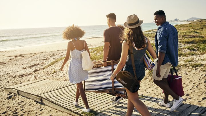 Escuche las melodías que mueven su día. Puede llevar el sonido potente y atrevido de este altavoz resistente al agua a cualquier lugar. ¿Quiere ejercitarse en el parque o disfrutar de la música mientras va de campamento? Con 15 horas de reproducción y una correa de transporte, siempre estará listo p...