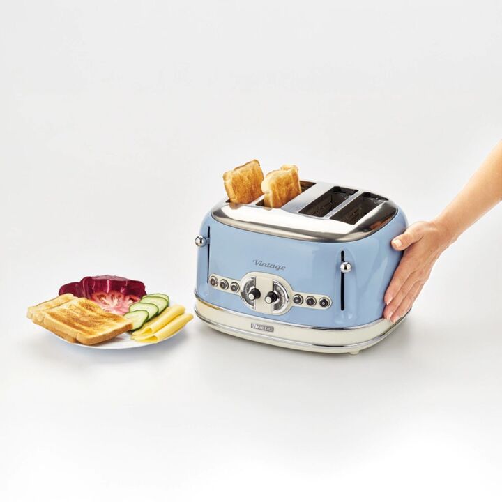 La tostadora eléctrica Vintage 156 de Ariete es la tostadora de diseño que, con sus formas únicas y sus colores pastel, decora tu cocina. El gran tamaño de esta tostadora (32 cm largo x 29 cm ancho x 30,5 cm altura) la convierte en un elemento de decoración perfecto para la cocina. La tostadora eléc...