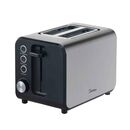 Potencia 950 Watts. Capacidad: 2 rebanadas. 7 niveles de tostados. Funciones: Tostar, descongelar y recalentar. Opción cancelar para detener el tostado cuando lo desees.
