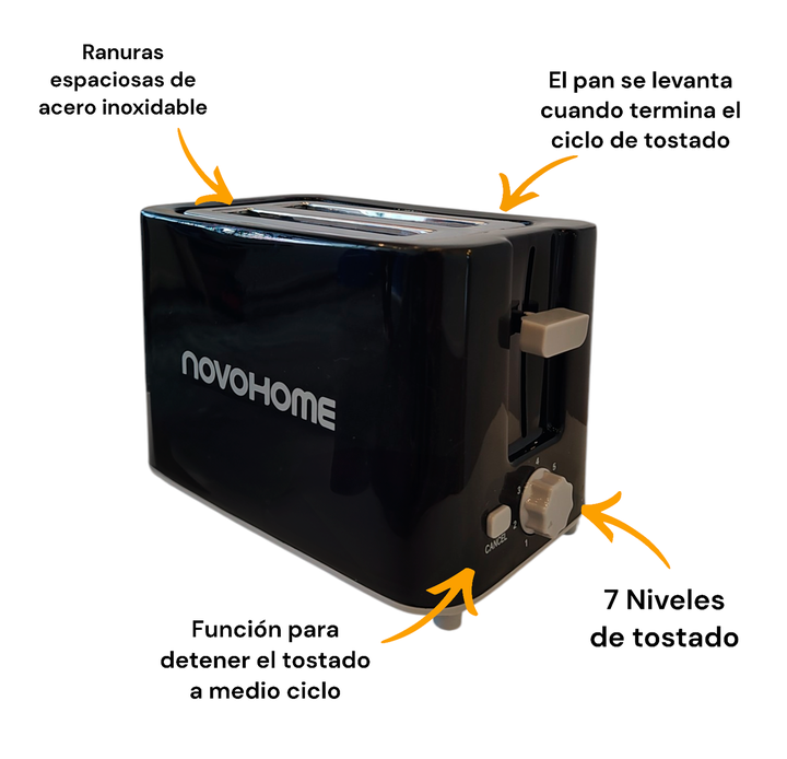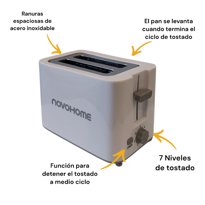 NOVOHOME TOSTADORA - TOASTER SKU BLANCA: NH-TO025 SKU NEGRA: NH-TO025N Descubre la tostadora Novohome NH-TO025 que transformará tus desayunos. Con la capacidad de tostar 2 rebanadas a la vez, esta tostadora está diseñada para ofrecer un rendimiento excepcional en cada uso. Cuenta con 7 niveles de to...
