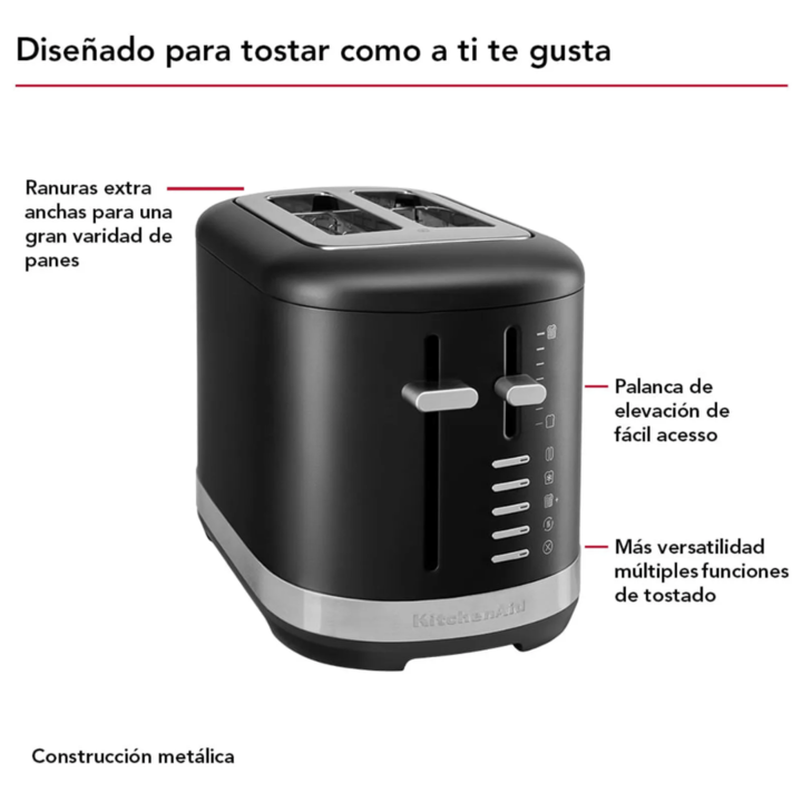 Tostadora KITCHENAID 2 Panes Black Matte LKMT2109RBM Haz que el día a día sea simplemente delicioso y tuesta fácilmente tus panes favoritos, bagels y mucho más con facilidad. Esta tostadora KitchenAid® de 2 rebanadas cuenta con ranuras extra anchas para tostar una gran variedad de formas y tamaños, ...