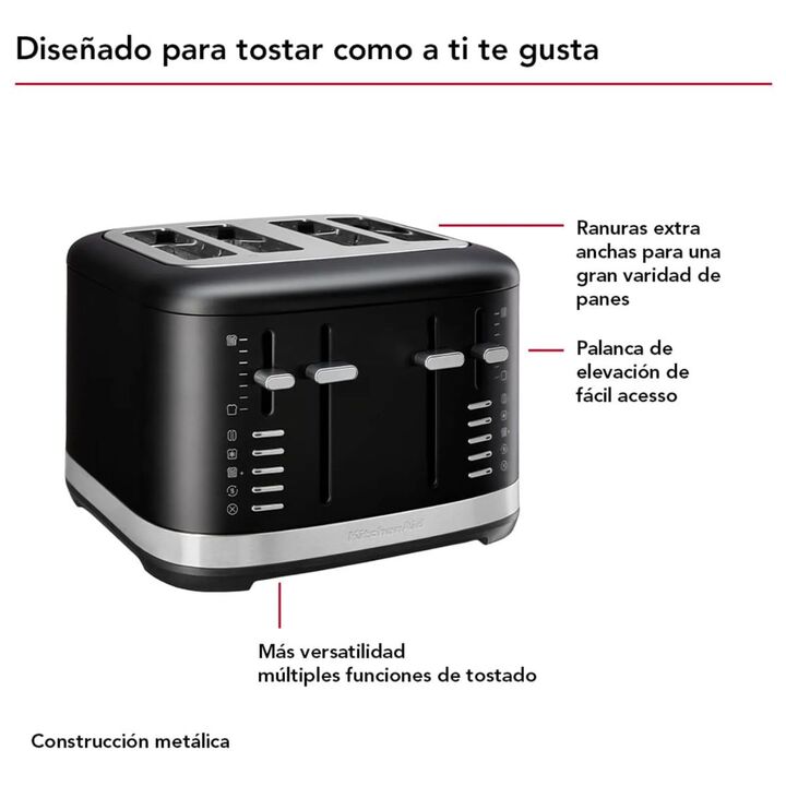 Rendimiento Excepcional: Tostadora para 4 rebanadas con ranuras extra anchas para pan artesanal o bagels, hasta 3 cm de ancho. Más versatilidad con selección de 7 tonos de nivel de tostado y 5 funciones: Bagel, Descongelar, Recalentar, Calentar un poco más y Cancelar Palanca de elevación alta para f...