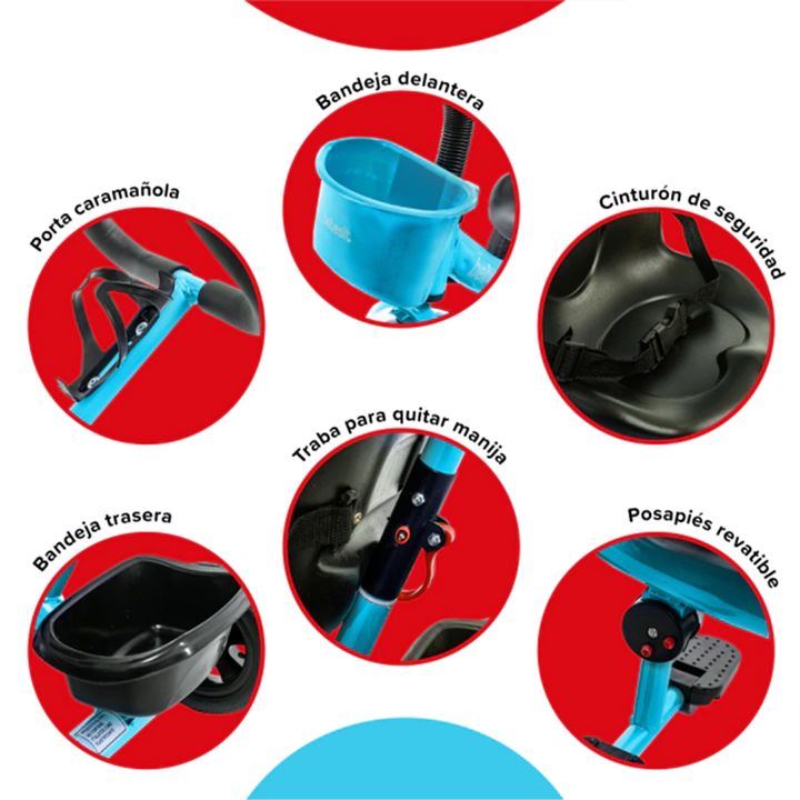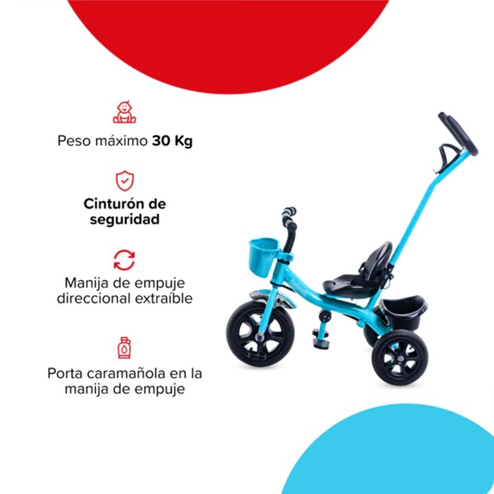 Triciclo Bebesit Con Barral De Acero Reforzado Azul Sl-1701c