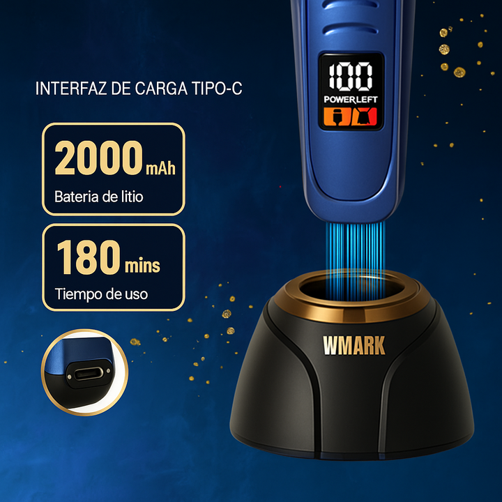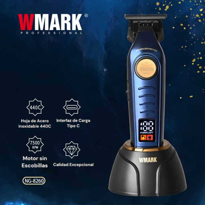 TRIMMER INALAMBRICA CARGA POR CABLE USB WMARK SKU: NG-8260 - Cuchillas: Cuchilla fija de alta calidad de metalurgia en polvo con cuchilla móvil de cerámica. - Velocidad del motor: 2 configuraciones: 7500/8000 RPM. - Batería: De litio de 2000 mAh, proporcionando aproximadamente 150 minutos de uso tra...