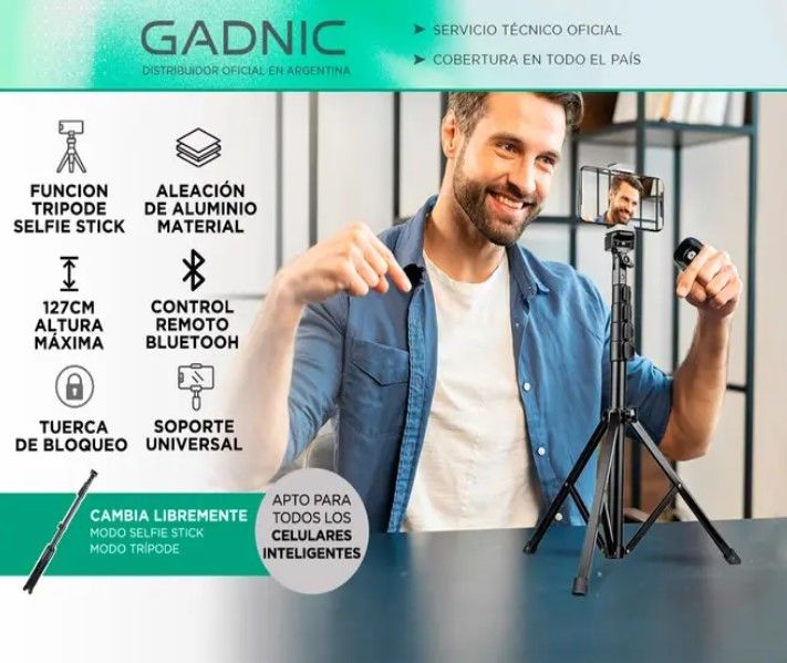 ¡Gadnic Presenta su Nuevo Trípode y Palo Para Selfie! Combo de trípode de palo selfie: No solo quieres tomar el selfie, sino que también quieres tomar fotos/videos con una excelente estabilidad mientras liberas tus manos. Gadnic te tiene cubierto con nuestro combo profesional todo en uno para llevar...