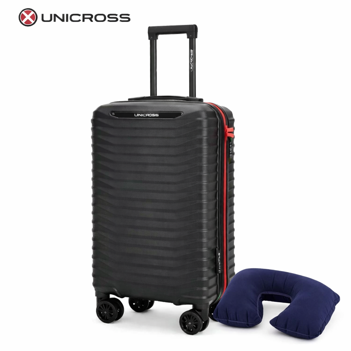 Valija Carry On ABS 20" Unicross con candado con combinación. 4 ruedas 360 grados extraibles. Cuenta con un compartimiento con una funda con cierre y en su interior un elástico para sujetar las pertenencias. Por otro lado contiene un cierre con un bolsillo de red que funciona como tapa para el esp...