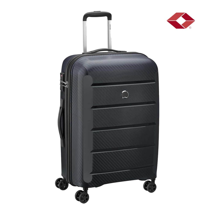 <p><em>- Medidas: 66 x 45 x 26 cm.</em><br /><em>- Peso: 3.5 kg</em><br /><em>- Capacidad: 77 Lts.</em><br /><em>- Material: ABS / Policarbonato</em><br /><em>- Marca: Delsey</em><br /><em>- Origen: China</em><br /><br /><em>Equipaje Mediano rigido color negro</em><br /><br /><em>- 4 Ruedas dobles m...