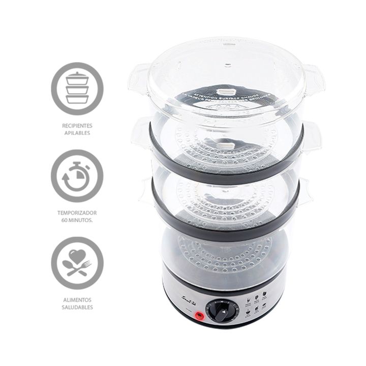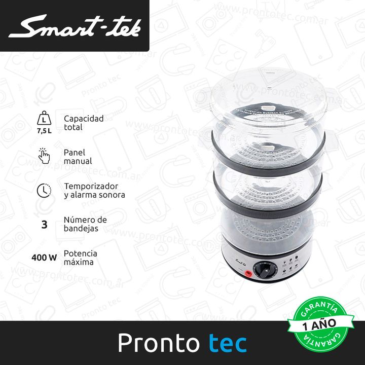 Disfrutá de comidas más saludables y llenas de nutrientes con la vaporera Smart-tek. Al no utilizar aceites, las comidas mantienen todos sus nutrientes para que tengas una comida natural, sin grasas agregadas y llena de sabor. Los recipientes de cocción apilables y extraíbles son aptos para lavavaji...