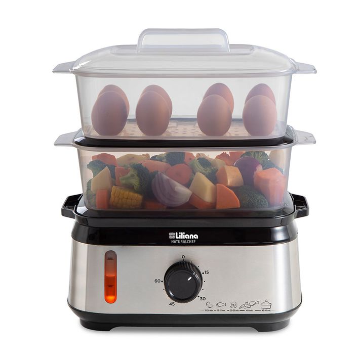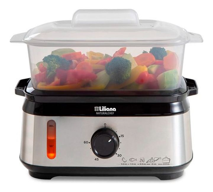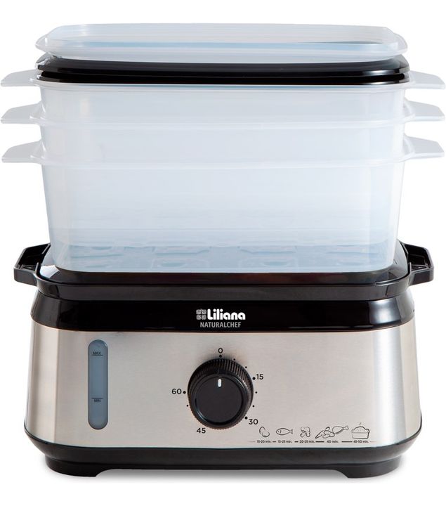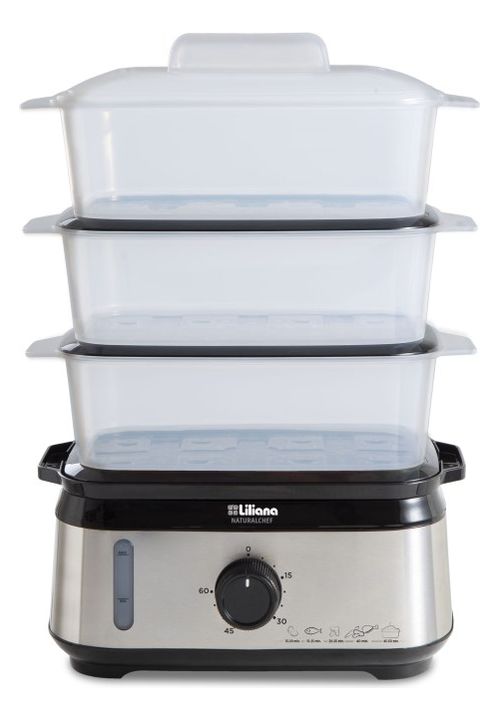 LILIANA VAPORIERA DIGITAL NATURALCHEF 950W MODELO: (AV925) Comida sana y natural: mantiene las propiedades y sabores. Elimina grasas y toxinas. · Cuerpo de acero inoxidable. · 3 Bandejas apilables. De 1 a 3 niveles: Capacidad total de las bandejas 9 Lts. · Contenedor accesorio para cocinar arroz y l...