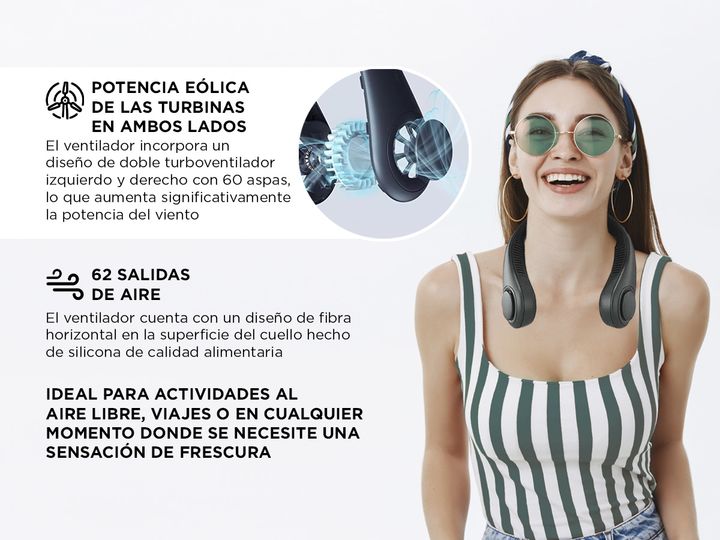 ¡Nuevo Ventilador Personal de Cuello! Ventilador de cuello manos libres: Este ventilador está diseñado para ser utilizado alrededor del cuello, lo que permite a los usuarios tener las manos libres mientras disfrutan de una brisa refrescante. Es ideal para actividades al aire libre, viajes o en cualq...