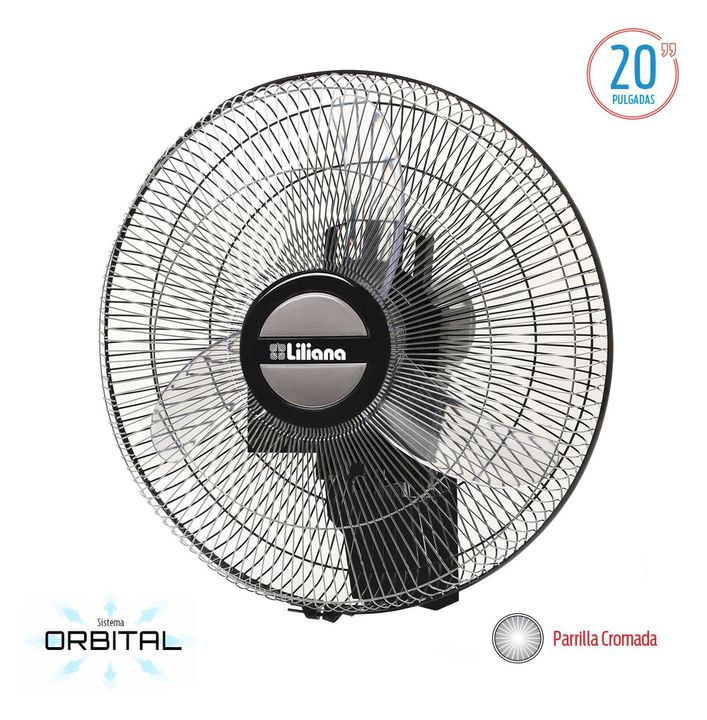 VENTILADOR DE PARED VWOC20 Modelo: VWOC20 Ventilador de Pared Orbital · Parrilla cromada. · 3 aspas transparentes. · Potente motor. · Súper silencioso. · 3 velocidades. · Diámetro de 20?. · Potencia: 90 watts. · Medidas: 57,4x15x75 cm. Sistema Orbital Direcciona la brisa en forma horizontal y vertic...