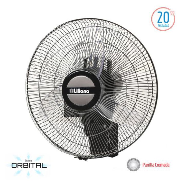 Ventilador de Pared Orbital · Comando frontal. · Parrilla cromada. · 3 aspas transparentes. · Potente motor. · Súper silencioso. · 3 velocidades. · Diámetro de 20″. · Potencia: 90 watts. · Medidas: 57,4x15x75 cm. Sistema Orbital Direcciona la brisa en forma horizontal y vertical. Este sistema permit...