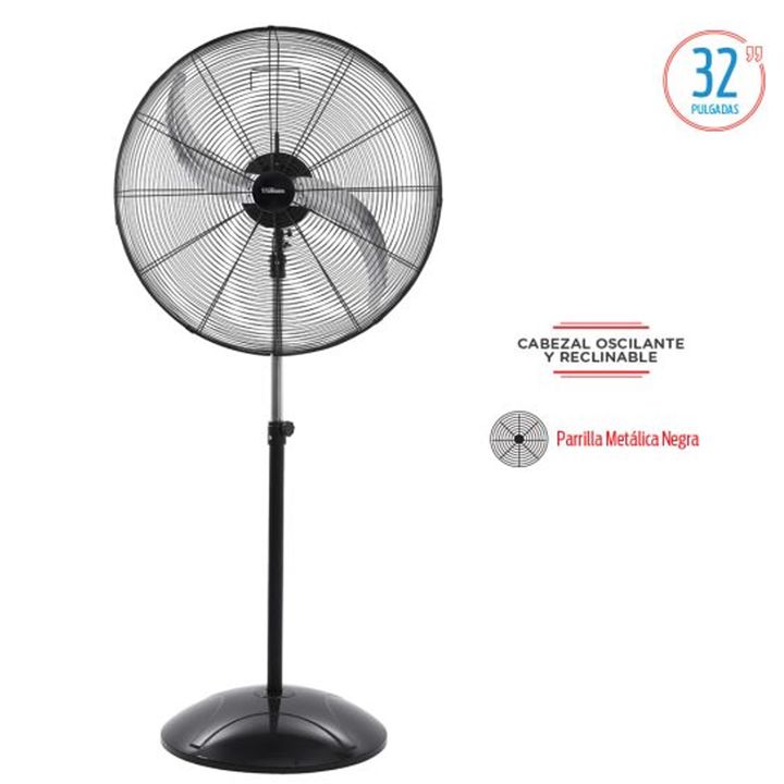 · Barral telescópico extensible metálico. Altura máxima 1.82 mts. · Cabezal oscilante y reclinable. · Parrilla metálica negra. · Palas tipo avión de 2 aspas. · Motores reforzados. · 3 velocidades. · Diámetro de 32″. · Potencia: 280 watts. · Medidas: 94,6×16,7×81,3 cm. Garantía 2 Años Industria Argen...
