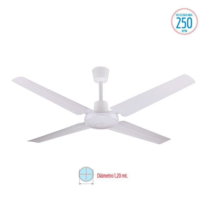 Ventilador De Techo Liliana VTHB104 65w 5 Velocidades 4 Palas Modelo: VTHB104 Motor con doble rodamiento blindado. · Regulador de velocidad de pared. · 5 velocidades. · 4 palas metálicas blancas. · Diámetro 1.2 mt (48”). · Velocidad máxima: 250 rpm. · Potencia: 65 watts. · Medidas: 54,5×24,5×20 cm. ...