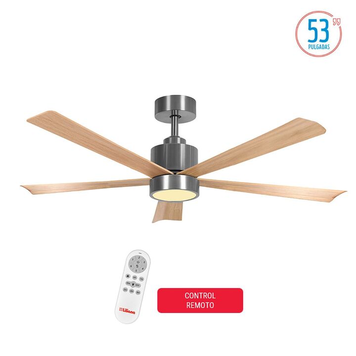 Ventilador De Techo Liliana VTHM935R Con Luz: ¡Estilo Moderno y Potencia Silenciosa!El Ventilador De Techo Liliana VTHM935R combina un diseño elegante con la máxima eficiencia en ventilación e iluminación. Su cuerpo con acabado en níquel cepillado y sus 5 palas símil madera aportan un toque moderno,...