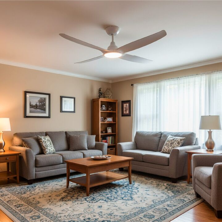 Con un diámetro de 56” (140 cm) y 4 aspas de material ABS, asegura un flujo de aire óptimo y un toque moderno a tu espacio.