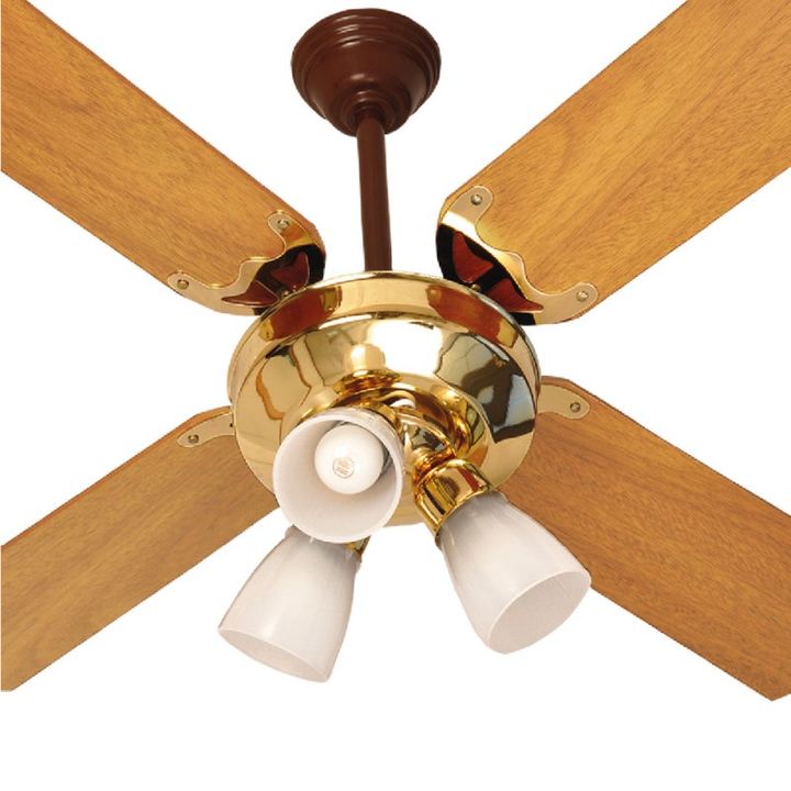 -VENTILADOR DE TECHO VTA420 CON LUZ DORADO SEVERBON - motor AC de 85W - con luminaria tulipas - 300RPM - Diámetro 1.20m - 4 palas de MDF cedro/haya - Detalles de acero en color dorado - con control remoto - Modelo VTA 420 -Garantia de fabricante 12 meses -Origen Argentina