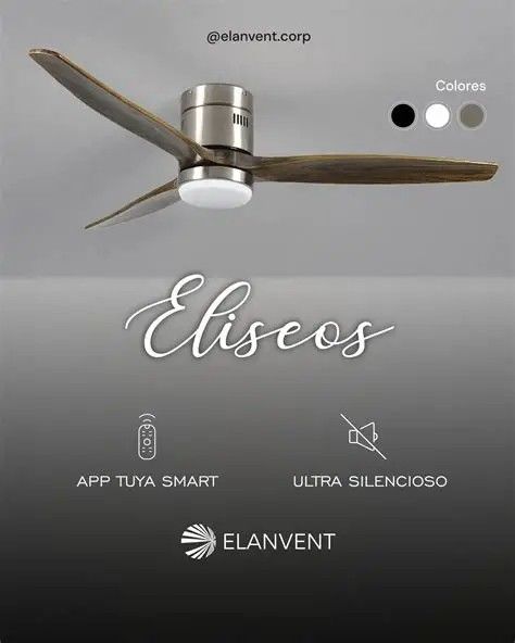 Diseño: 3 aspas de madera maciza, diámetro 132 cm, estructura de metal. Función verano/invierno: cuando las aspas giran en sentido contrario a las agujas del reloj, el aire caliente se eleva y el aire fresco desciende, dispersándolo por todo el ambiente. En cambio en los días más fríos, cuando las a...