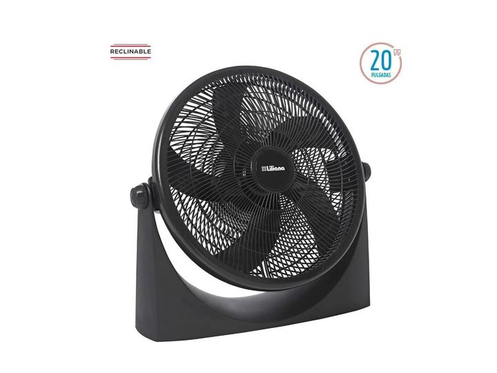 TURBOVENTILADOR RECLINABLE VTF20P Modelo: VTF20P Ventilador reclinable con opción de fijación a pared. · Nueva base antideslizante. · Cabezal reclinable. · Súper silencioso. · 3 velocidades. · Gran caudal de aire. · 5 aspas negras. · Diámetro de 20?. · Potencia: 90 watts. · Altura: 80 cm . Ancho: 70...