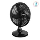 Ventilador de Mesa · Cabezal oscilante y reclinable. · Súper silencioso. · 3 velocidades. · 5 aspas negras. · Base antideslizante. · Diámetro de 16″. · Potencia: 65 watts. · Medidas: 48,5x15x65,5 cm. Garantía 2 Años Industria Argentina
