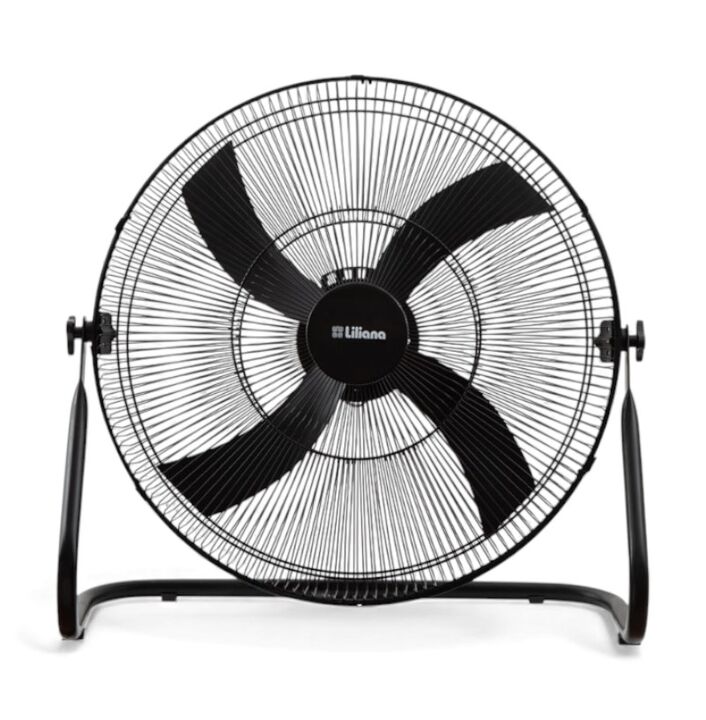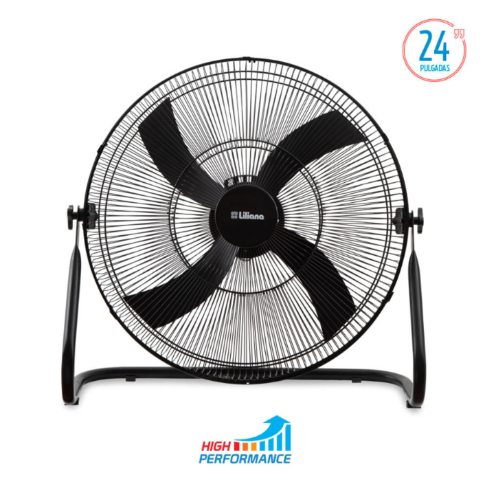 LILIANA VENTILADOR TURBO RECLINABLE 24 SKU: VTHP24 - Diametro: 24. - Cabezal reclinable. - Parrilla metalica negra - 4 aspas plasticas negra. - 3 velocidades. - Motor con doble rodamiento. - Base metalica antideslizante. - Potencia 120 watts 24 MESES DE GARANTIA CON LA MARCA