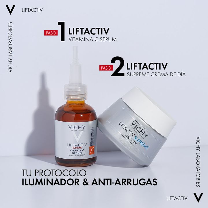 Vichy Serum Liftactiv Supreme Vitamin C Activador De Luminosidad 20ml 15% Vitamina C Pura - Pycnogenol - Vitamina E - Ácido Hialurónico Puro Refuerza la defensa antioxidante. Piel más luminosa en 10 días. Corrige líneas de expresión. LA CIENCIA DEL EXPOSOMA: La edad y los agresores externos, como la...