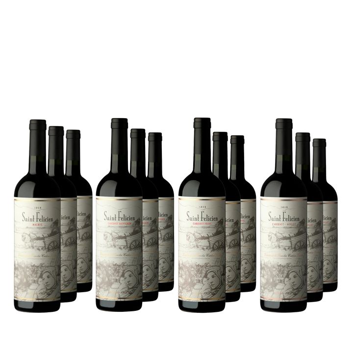 Incluye 3 Botellas de Vino Tinto Saint Felicien Cabernet - Merlot 750 ml - 3 Botellas de Vino Tinto Saint Felicien Cabernet Franc 750 ml - 3 Botellas de Vino Tinto Saint Felicien Cabernet Sauvignon 750 ml - 3 Botellas de Vino Tinto Saint Felicien Malbec 750 ml - Imagenes usada solo como ilustracion....