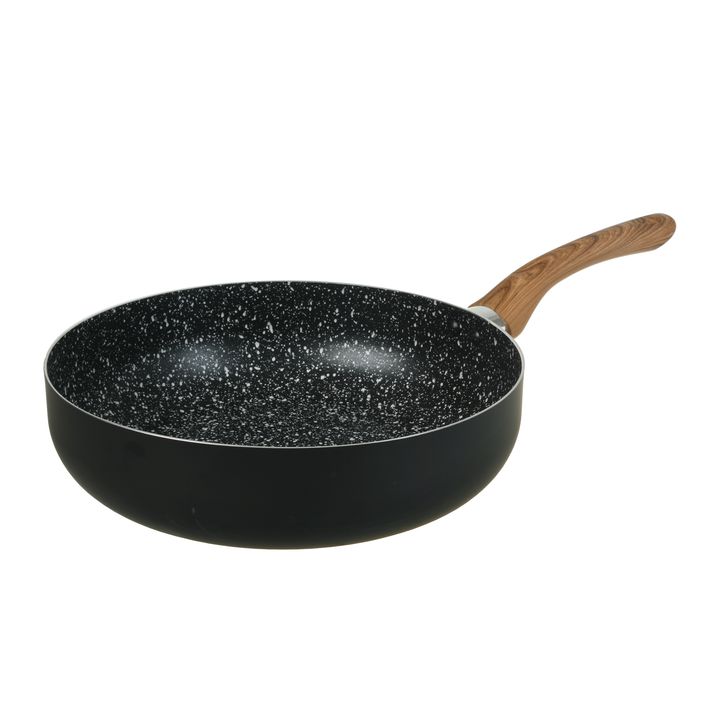 Wok Sarten de 28 cms recubierta internamente con ceramico antiadherente. Material : Aluminio con antiadherente en su interior. El mango es de baquelita simil madera y contacto siliconado soft touch . El interior tiene antiadherente ceramico ( pintitas blancas) , el exterior de la sarten es lisa. Alt...