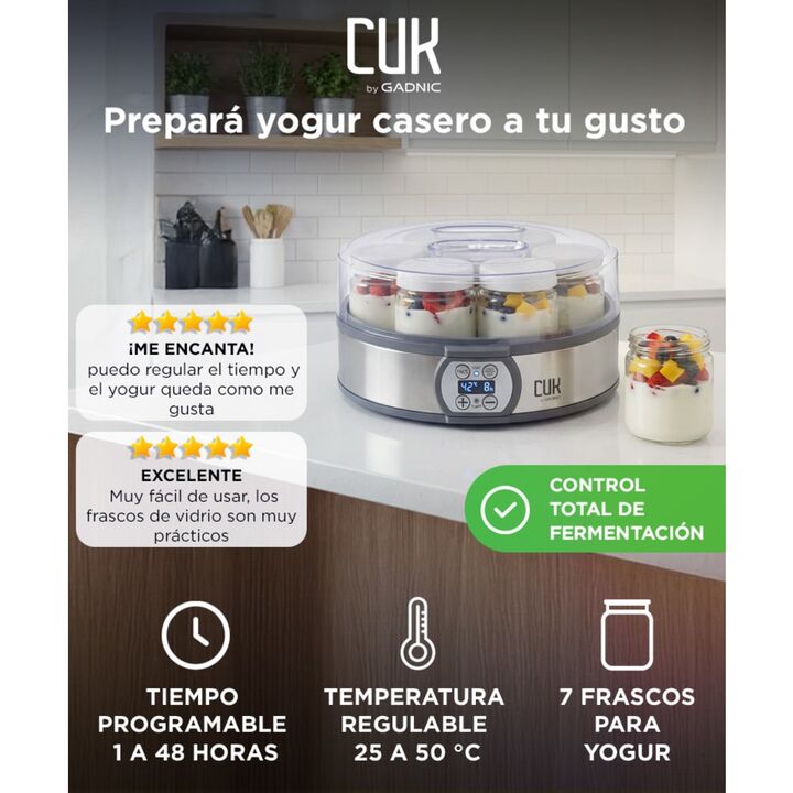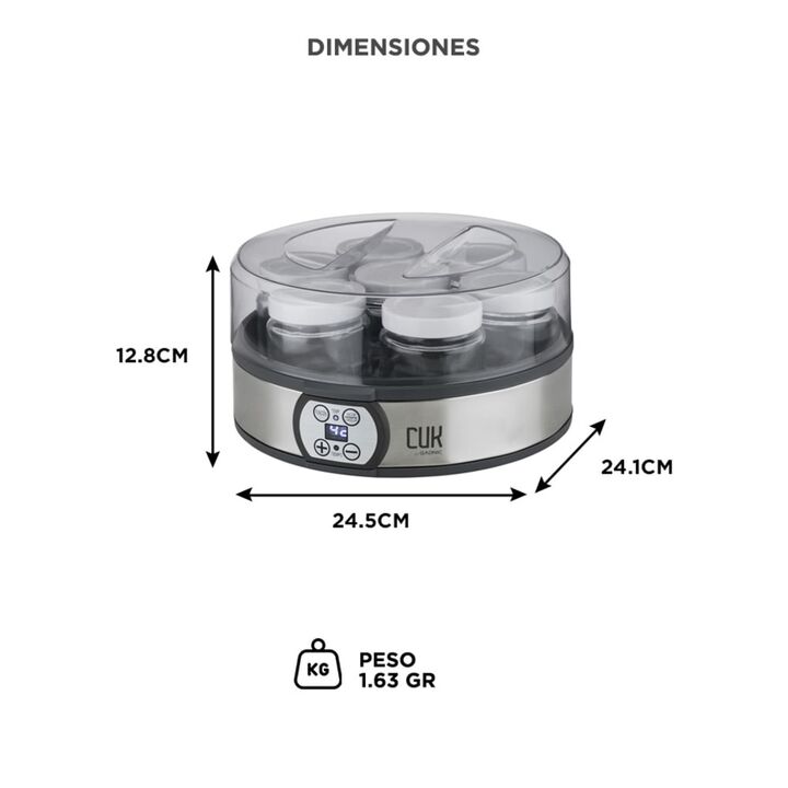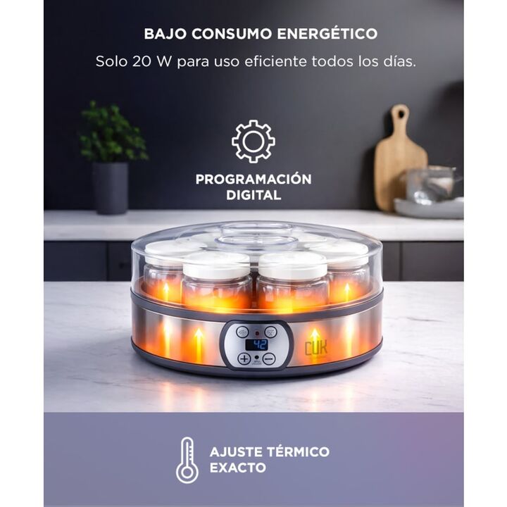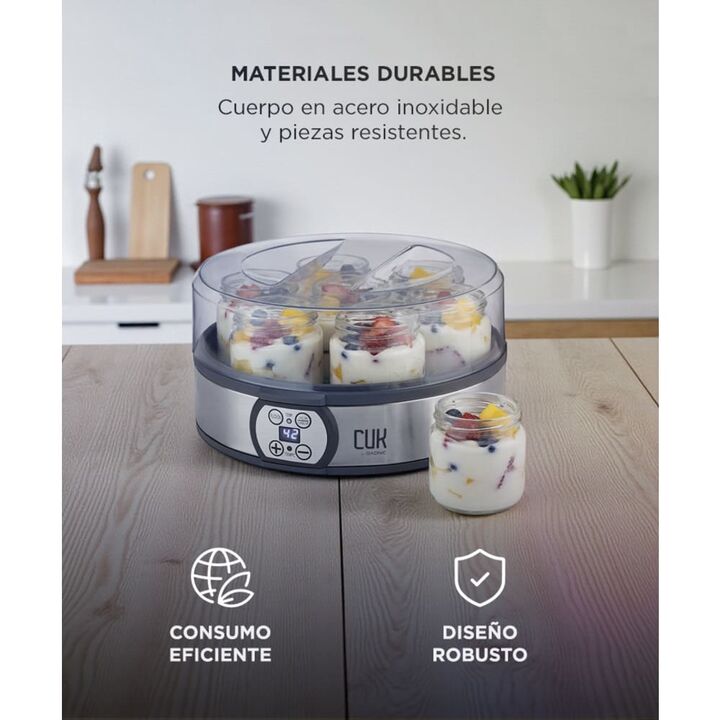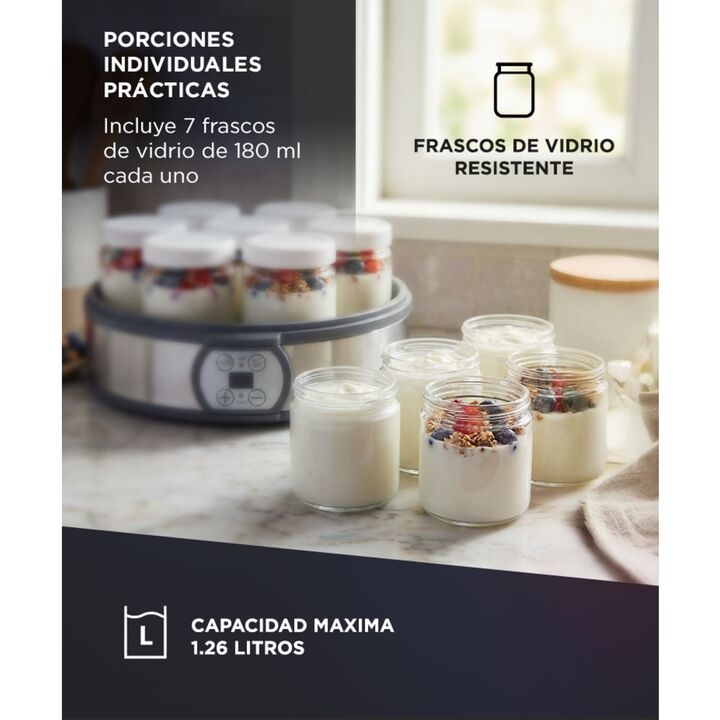 Control total de fermentación: La Yogurtera digital permite regular tiempo y temperatura de forma precisa para lograr yogur con la textura y acidez deseada. Ideal para ajustar cada preparación según tu gusto. Yogur natural y griego en casa: Prepará yogur casero sin conservantes ni aditivos. Su rango...