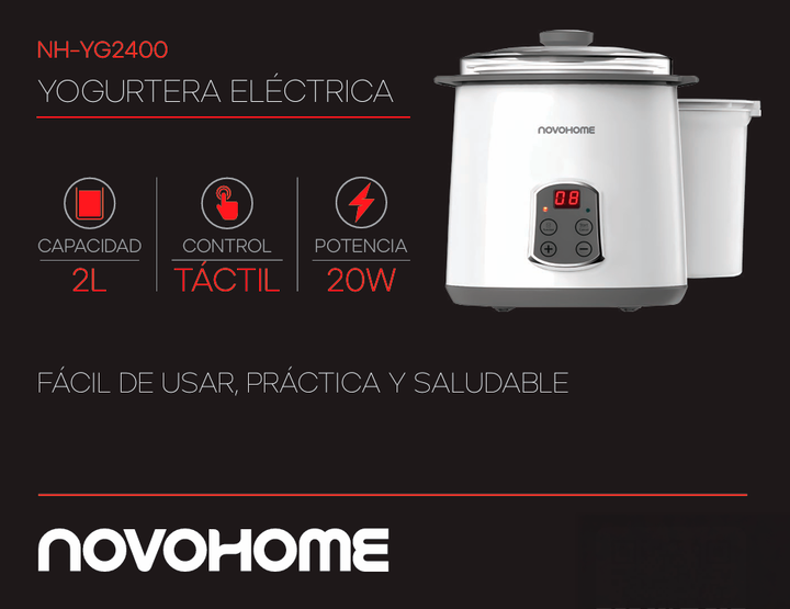 NOVOHOME YOGURTERA 2 LTS DIGITAL - COLOR GRIS 20W SKU: NH-YG2400 DELICIAS CREMOSAS EN UN SOLO CLIC La yogurtera Novohome es un electrodoméstico de alta calidad, diseño elegante y funcional que pronto se convertirá en un imprescindible en tu cocina. Es la aliada perfecta para preparar yogur cremoso y...
