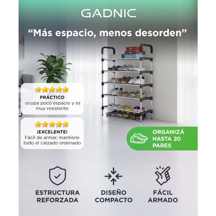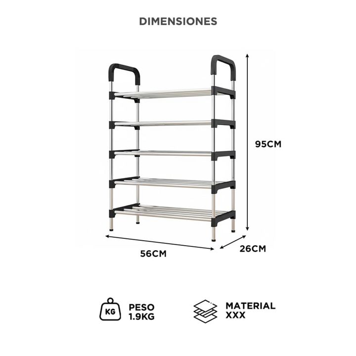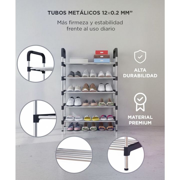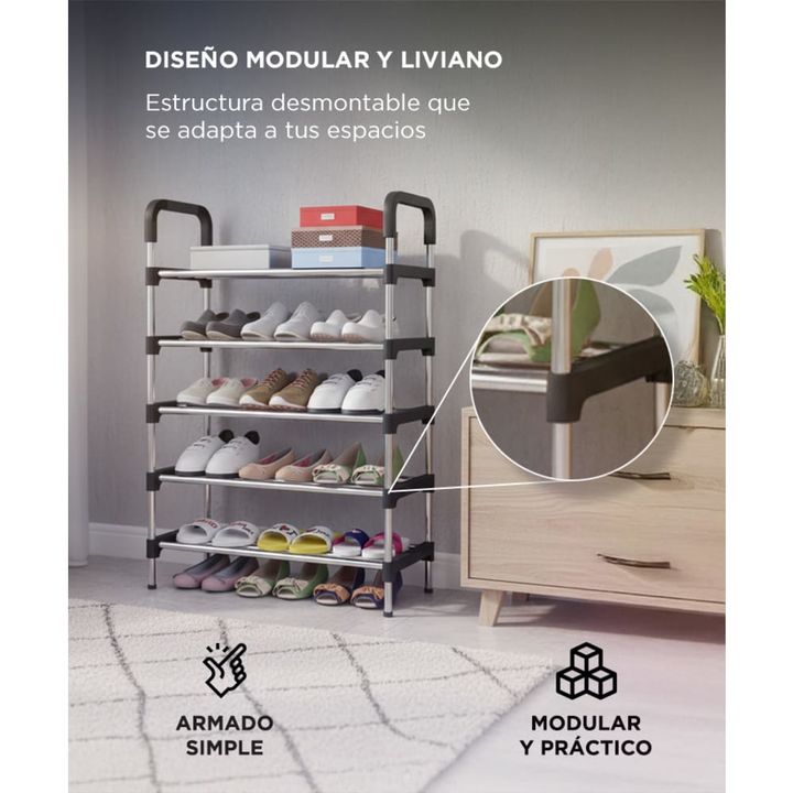 Capacidad para todo tu calzado: Mantén tu hogar ordenado con espacio para hasta 20 pares. Ideal para zapatos, zapatillas y botas cortas. Diseño firme y liviano: Tubos metálicos con conectores reforzados que aseguran estabilidad y durabilidad. Armado rápido sin herramientas: Sistema de encastre tipo ...