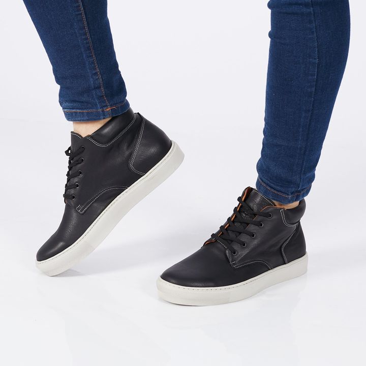 Zapatilla tipo botita con costuras laterales y franja acolchada en el área del tobillo para una mayor sensación de comodidad. Su base de goma tiene propiedades antideslizantes que garantizan seguridad y durabilidad. ¡Crea tendencia esta temporada junto a Trus! - Base: Goma - Material Interno: Cuero ...