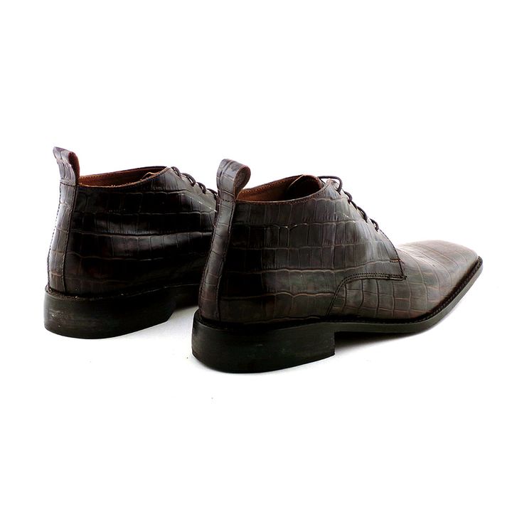 Zapato estilo bota para hombre fabricado en cuero chocolate de primera calidad. Un diseño innovador trabajado en cuero croco, con terminación en punta para mayor elegancia. Perfecto para ocasiones formales. - Base: Suela - Material Interno: Cuero - Material Externo: Cuero Croco - Articulo: HCAC00681...