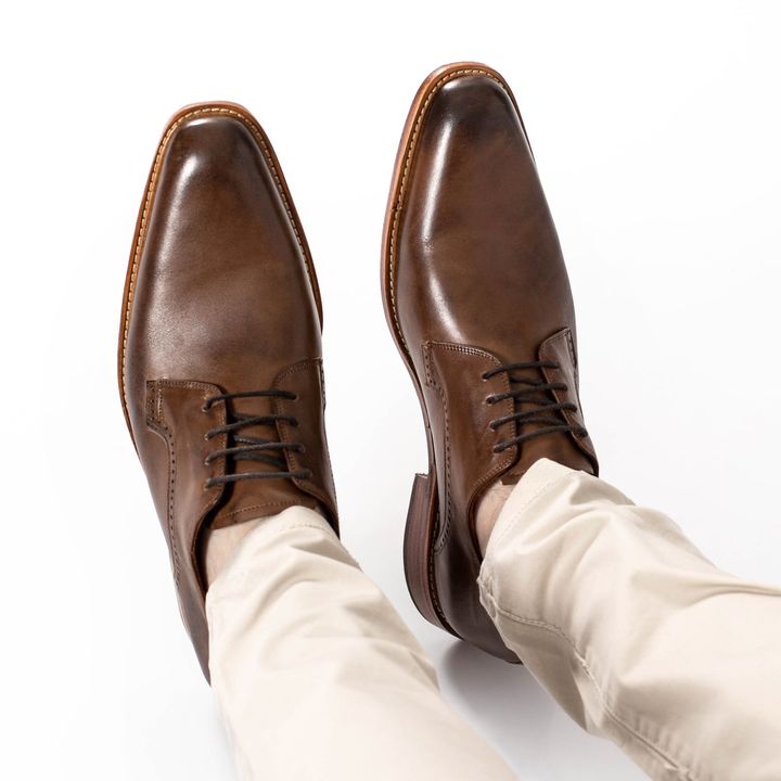 Zapatos Michel chocolate para hombre fabricados en cuero de primera calidad. Estos zapatos han sido diseñados con un estilo único, clásico y formal, con cordones, suela resistente y puntera fina. Fantásticos para vestir en una fiesta, evento especial e incluso para un look más informal. - Base: Suel...